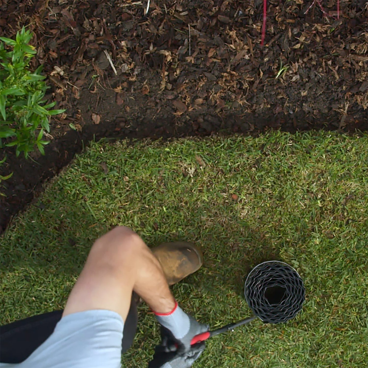 - Be mindful when unrolling the metal edging, as it's under tension and could uncoil quickly.