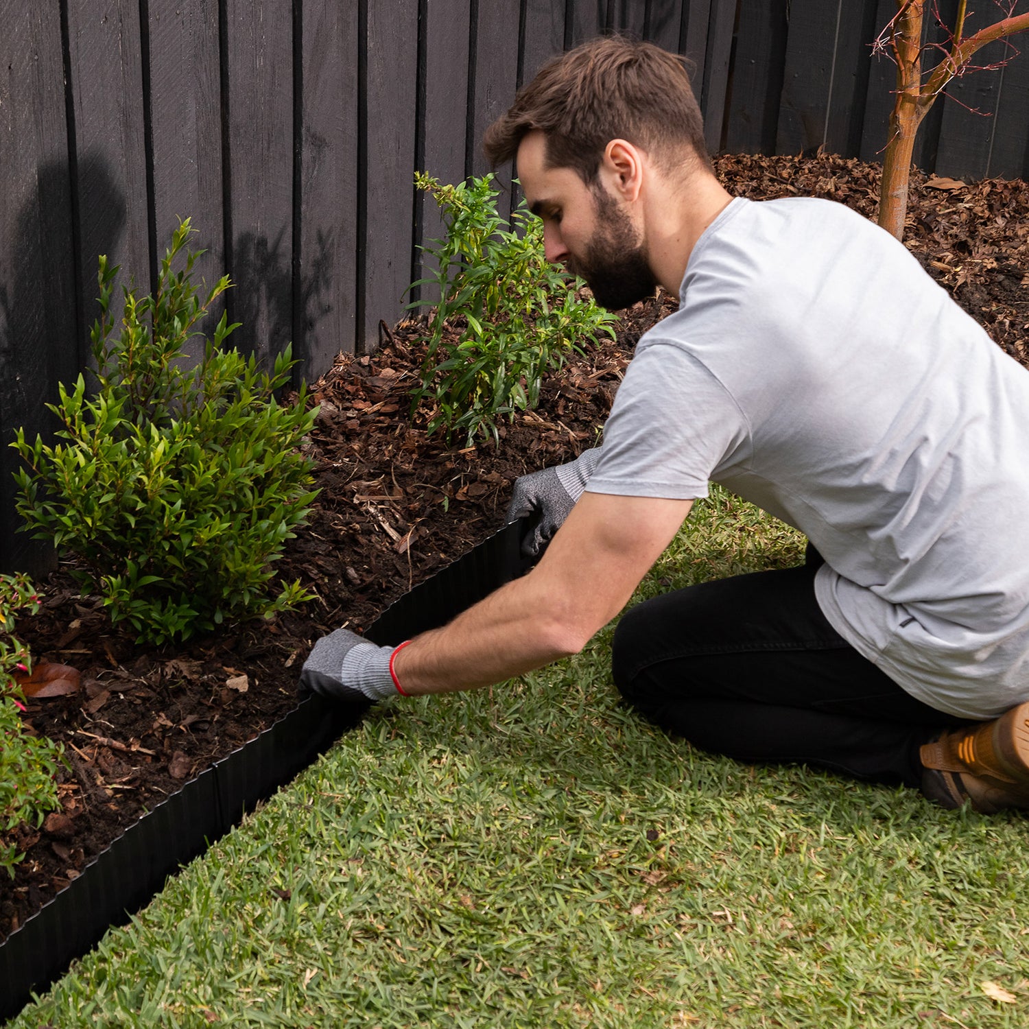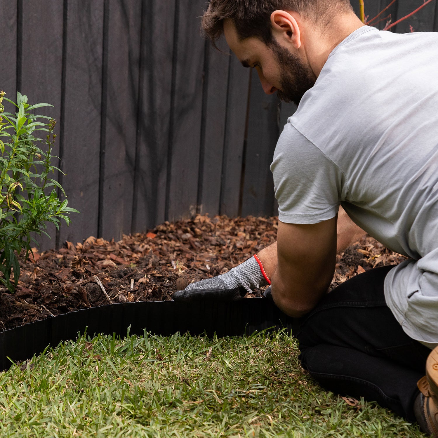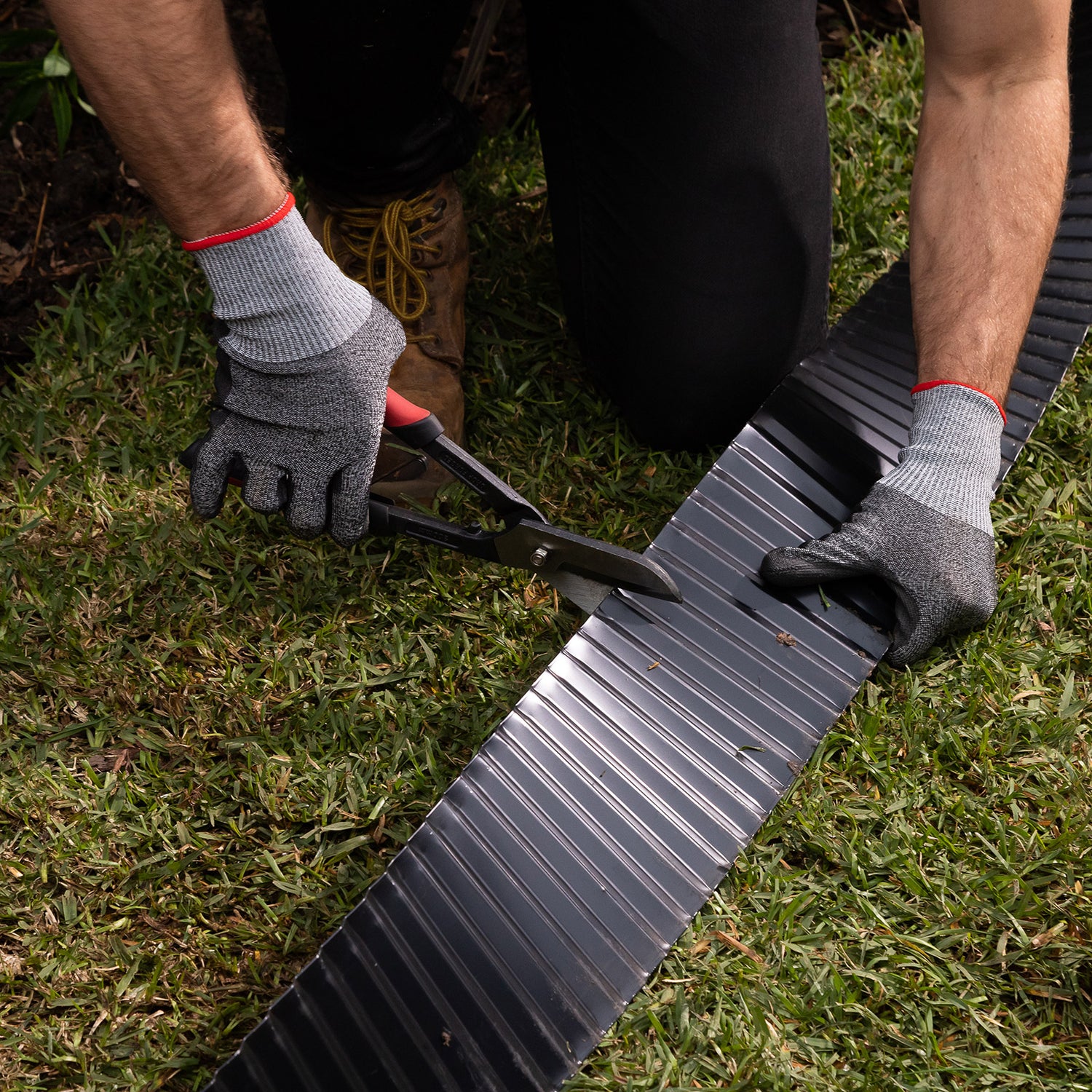 - Always wear safety glasses and gloves when handling and cutting the metal edging.