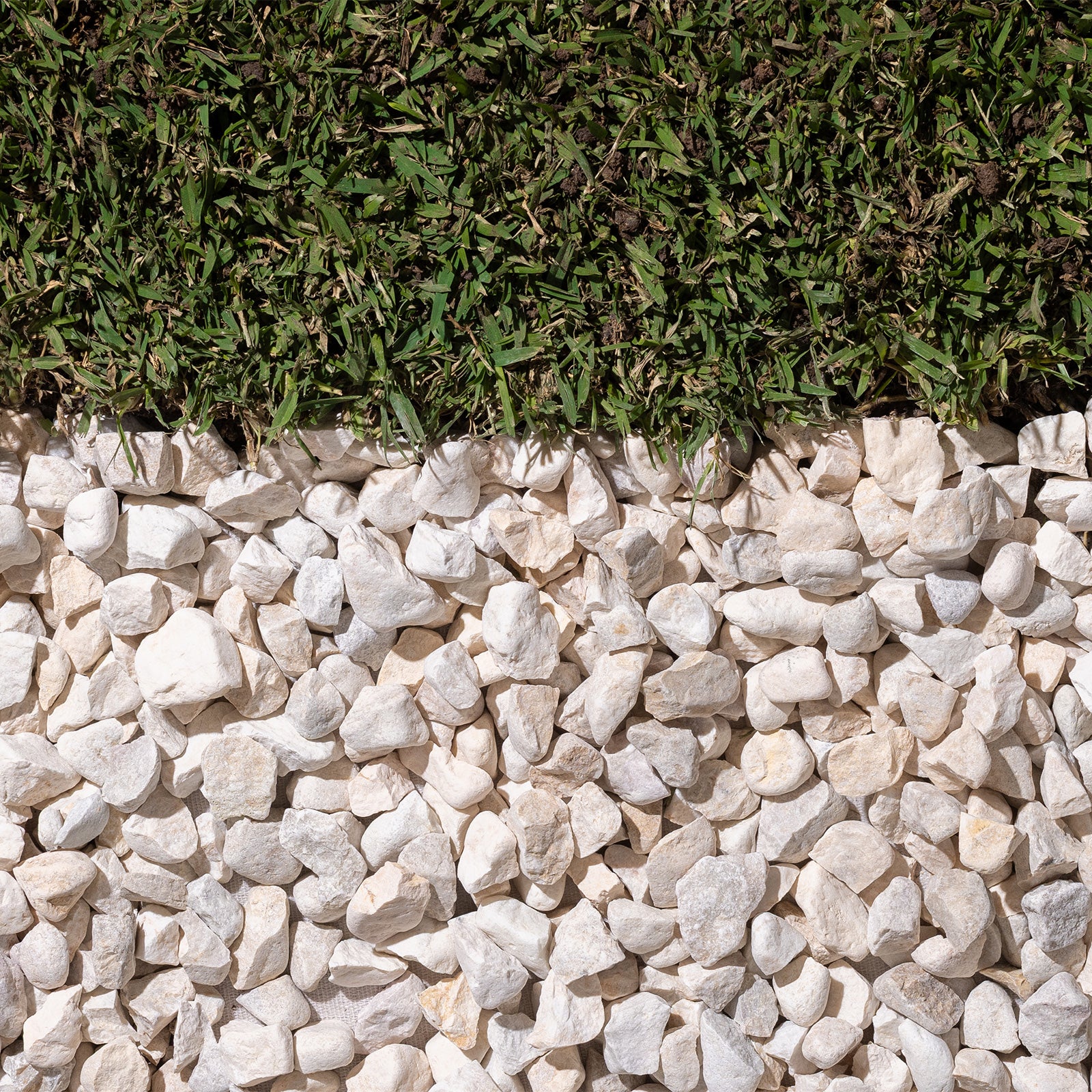 Featuring an organic crushed finish and cool ivory tones that create a light, contemporary look, these pebbles will pair well with darker pavers, natural stone or timber elements for striking contrast.
