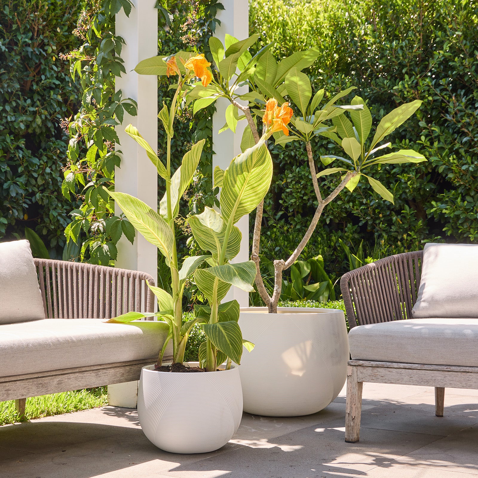 Crafted from lightweight, durable plastic, Gavin offers effortless versatility. Its weather-resistant finish and built-in drainage hole make it ideal for outdoor use, while the clean white finish and range of shapes and sizes, ensure there’s an option to suit every space.